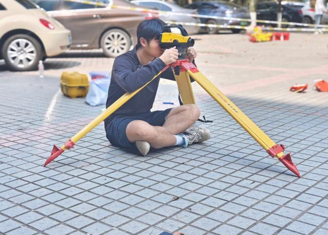 “接到参赛通知时,距离比赛仅剩不到一个月,时间紧迫。”这场赛事涵盖二等水准测量、一级导线测量、数字化成图等高难度项目,通常需要至少半年的系统备赛。面对紧迫的时间,指导团队迅速启动“三级选拔机制”:初选侧重计算能力,复选考验仪器操作稳定性,终选则通过48小时高强度模拟实战淘汰心理素质较为薄弱的选手。最终,8名选手从56名竞选者中杀出重围,组成“敢死队”。
