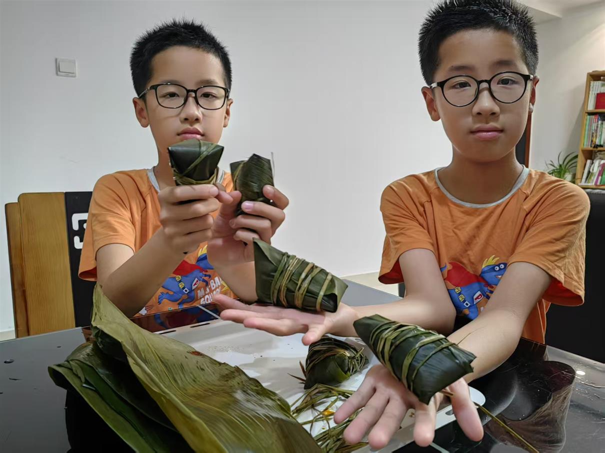陈大虎老师的孩子们一起包粽子