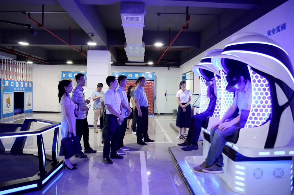 调研团队参观了我校水情教育馆与水利水电施工安全体验馆,系统了解了湖南省水资源分布、水旱灾害防治及水利工程发展历程。在水利水电施工安全体验馆中,调研团队通过VR眼镜沉浸式体验了模拟工程现场。