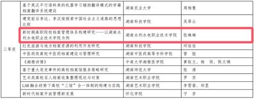 6月9日,湖南省“国际档案日”专场活动在省委机关举办。湖南省高等教育学会公布了2025年湖南省教育档案科研优秀成果、高校档案工作创新优秀案例的评审结果。我校党政办张琳琳获创新优秀案例二等奖1项、科研优秀成果三等奖1项,展现了近年来我校档案工作创新发展的成果。