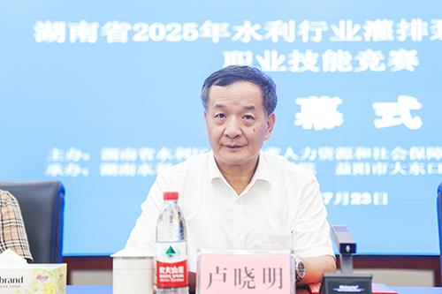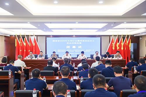 7月23日上午,由湖南省水利厅、湖南省人力资源和社会保障厅、湖南省总工会联合主办,湖南水利水电职业技术学院、益阳市大东口电排管理站承办的湖南省2025年水利行业灌排泵站运行工职业技能竞赛闭幕式在我校图书馆实训综合楼601会议室成功举行。湖南省水利厅二级巡视员卢晓明,学校党委书记常世名,湖南省职工技术协作办公室二级调研员邹红梅,扬州大学教授、总裁判葛强,以及水利厅相关部门领导出席,闭幕式由常世名主持。