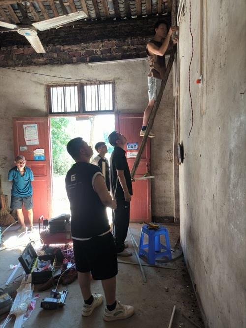 “电系万家”实践团以“安全”为笔,守护岩山、山阳两村用电与财产安全。团队兵分多路,冒雨入户服务,为耄耋老人、退伍伤残军人改造老化线路,精准排查隐患、理顺杂乱电线;设点修理村民故障家电,同步开展防电信诈骗宣传与安全用电常识普及,更用方言传递暖心叮嘱,让“电力暖乡”承诺在细节中落地。