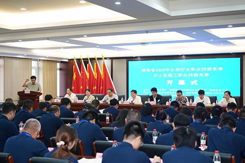 近日,湖南省2025年水利行业职业技能竞赛·水工监测工职业技能竞赛在我校盛大开幕。湖南省水利厅党组成员、副厅长杨诗君,厅运行管理与监督处处长伍佑伦,厅人事处副处长谢续华,我校党委书记常世名出席开幕式,仪式由我校党委委员、副校长卜志纯主持。来自全省14个市州的65名参赛选手齐聚一堂,共赴这场水利技能盛会。