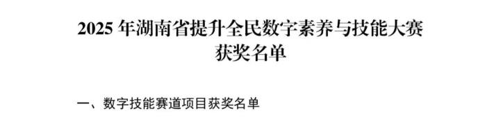 近日,2025年湖南省提升全民数字素养与技能大赛获奖名单正式公布,我校经济管理学院张明、汤洁玉师生团队凭借两项聚焦碳中和的数字技能作品,分别荣获教师组与学生组三等奖,展现了我校在数字化赋能绿色低碳发展领域的教学创新与实践成果。本次大赛由省委网信办、省教育厅、省科技厅等十部门联合举办,旨在普及数字技术、共享数字成果,为全省新质生产力发展和网络强省建设夯实人才基础。