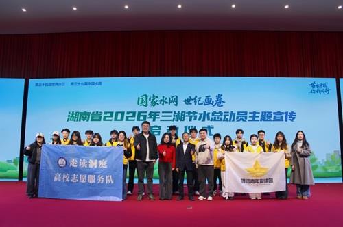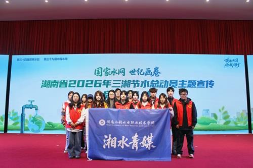 春潮涌潇湘,节水正当时。3月25日下午,第三十四届“世界水日”、第三十九届“中国水周”暨湖南省2026年“三湘节水总动员”宣传活动启动仪式在宁乡经开区举行。我校党委委员、副校长黄敏率校团委及四个志愿服务团50余名师生志愿者应邀参加,以实际行动为三湘节水事业贡献水利职教力量。