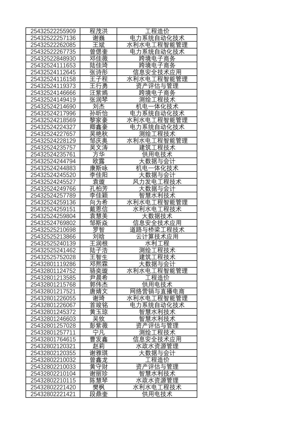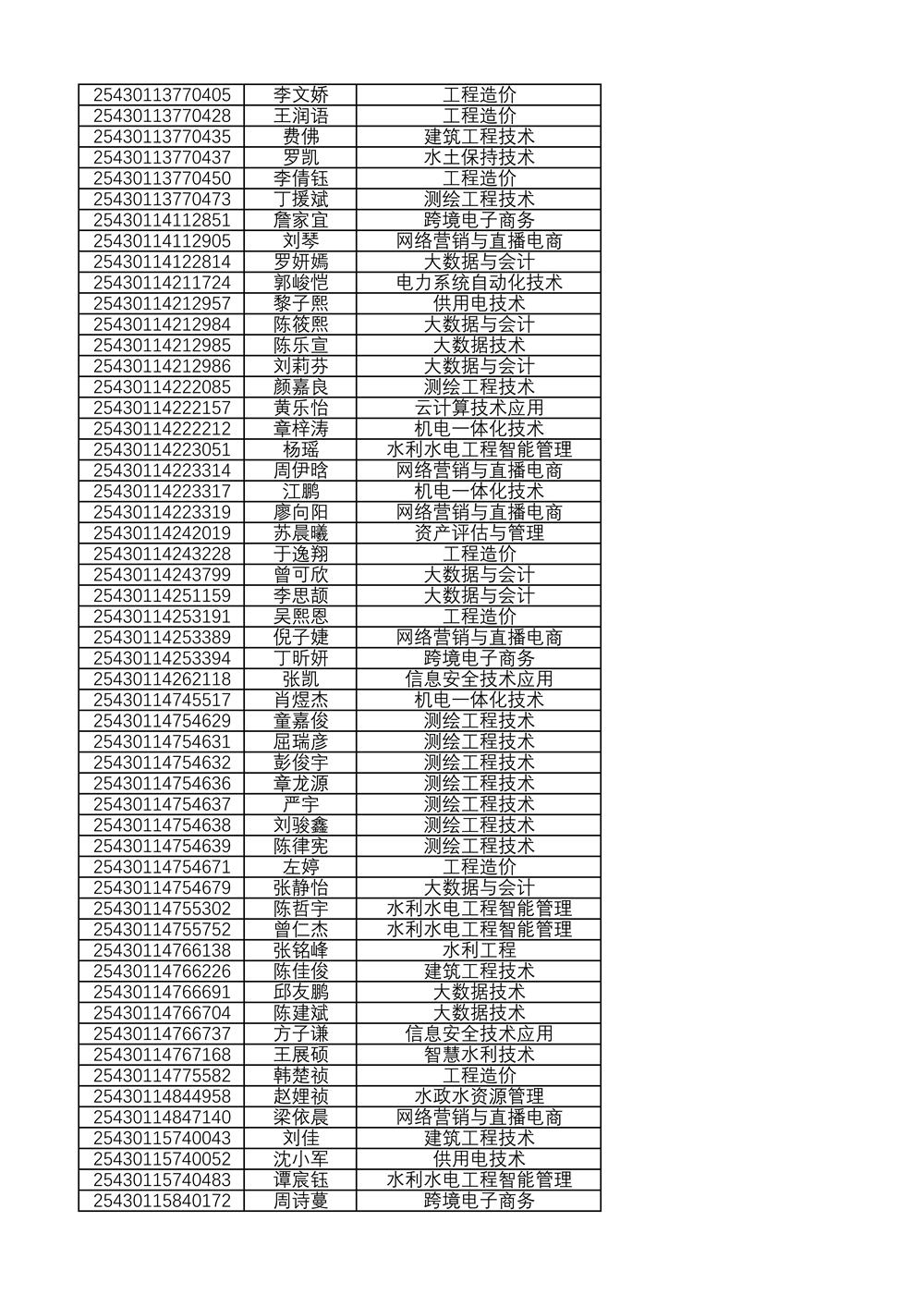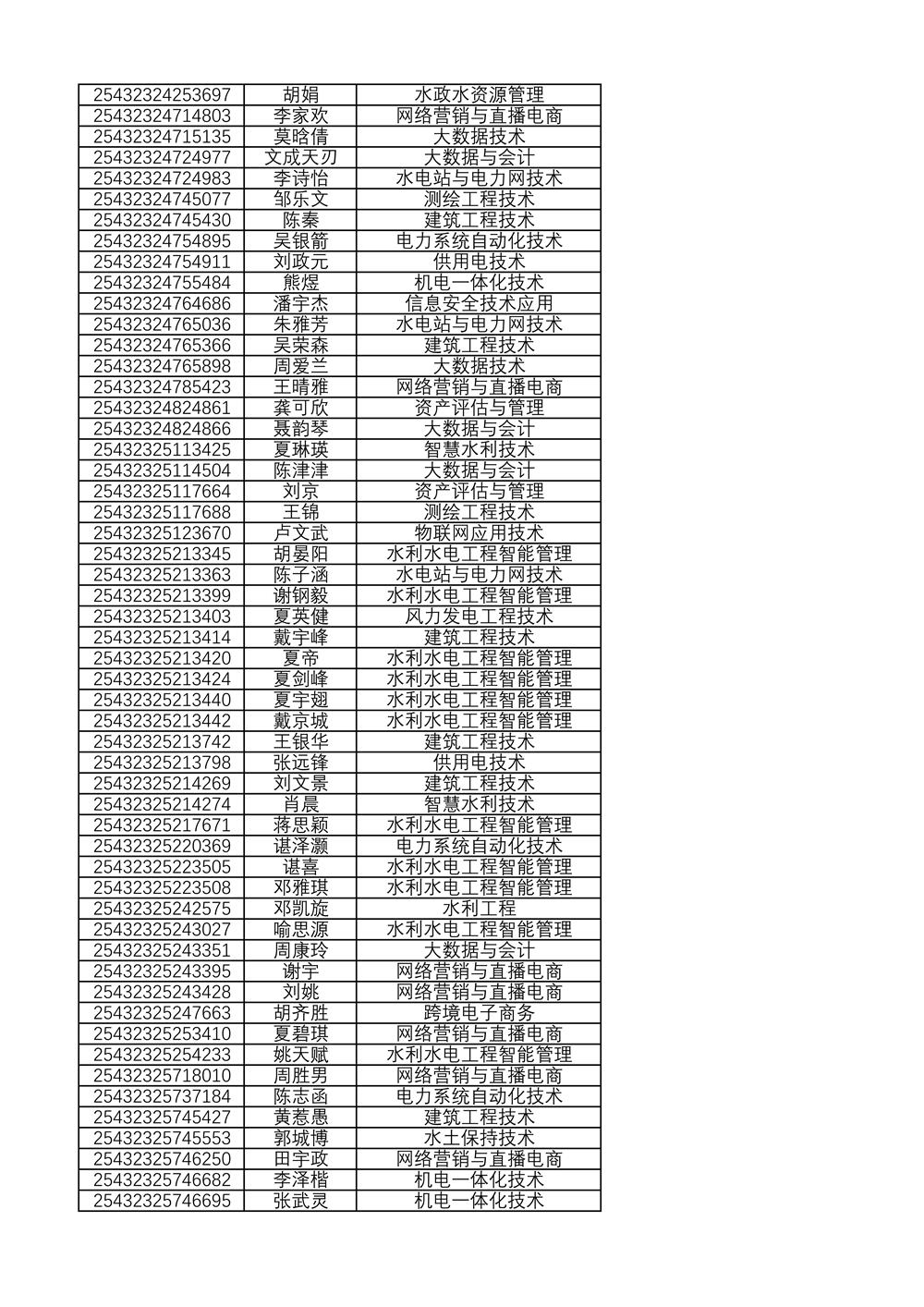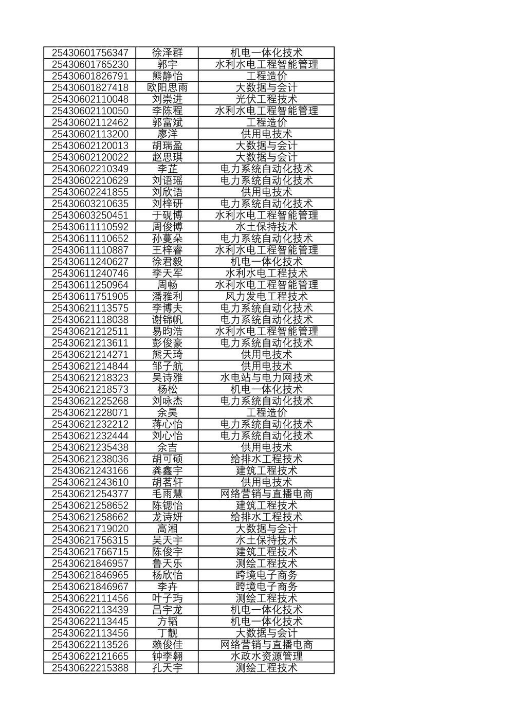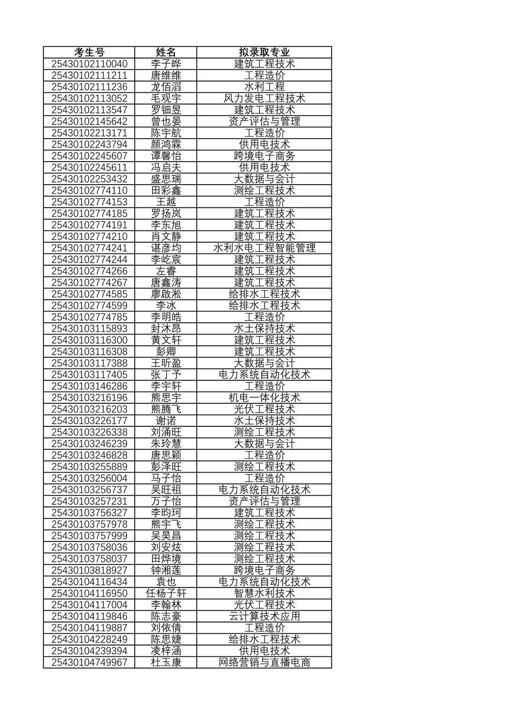 附:2025年单独招生拟录取名单(按考生号排序)