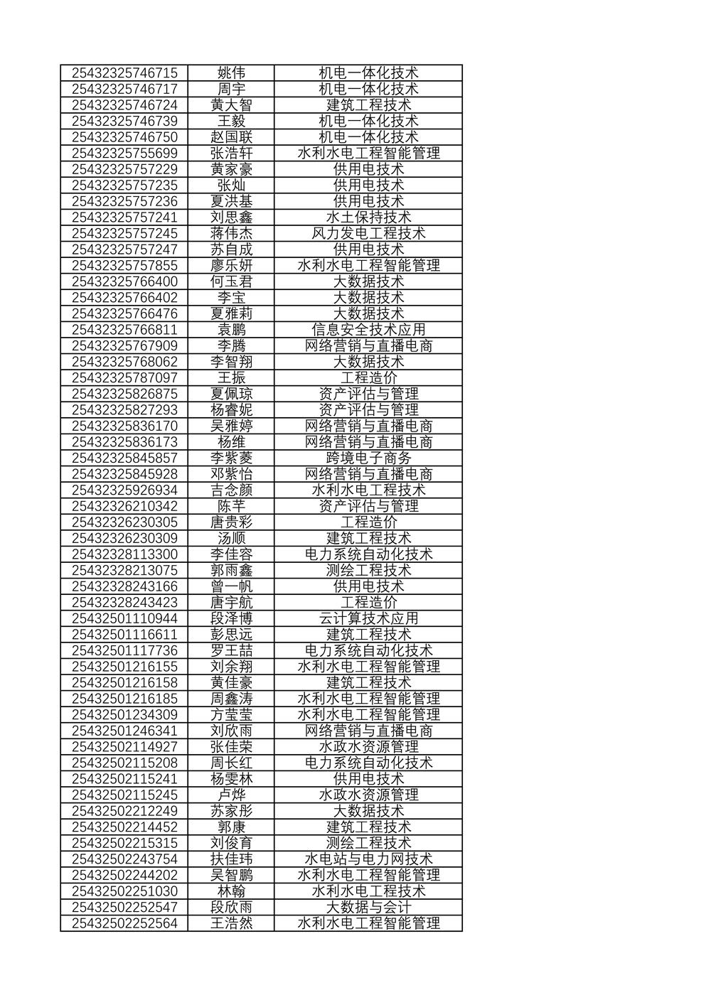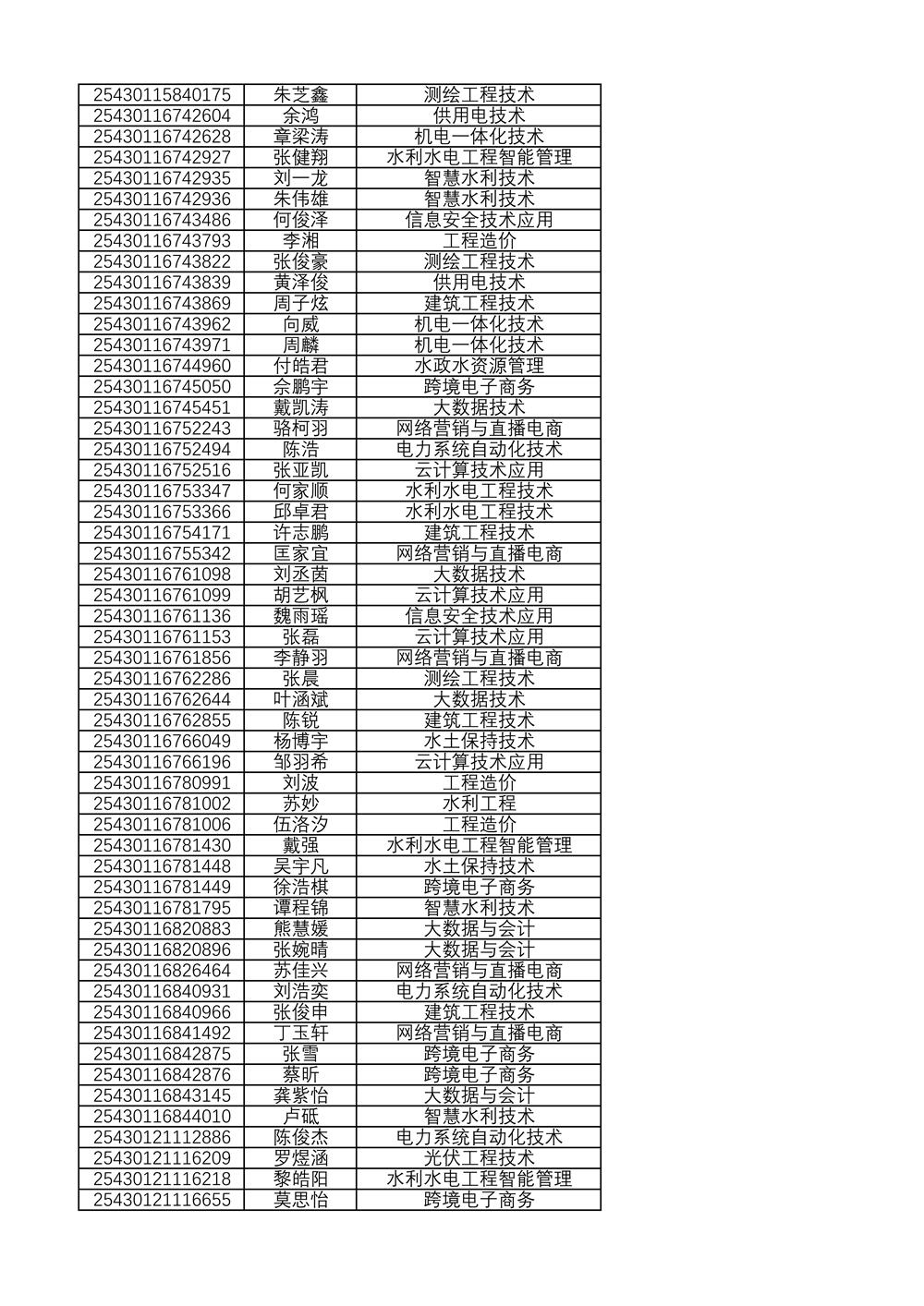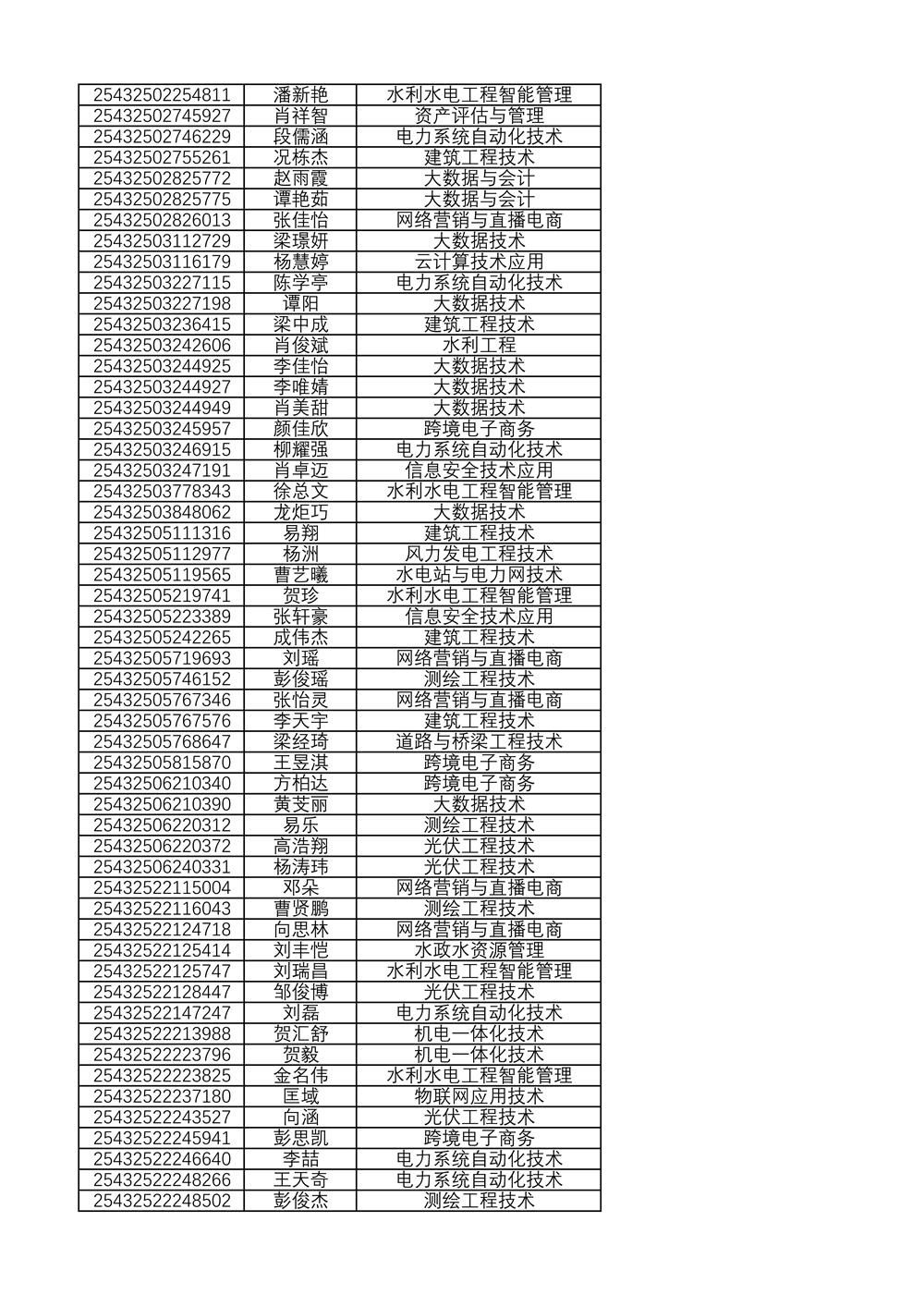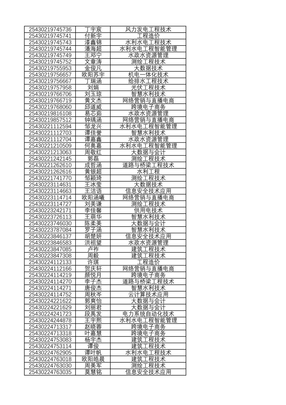 附:2025年单独招生拟录取名单(按考生号排序)