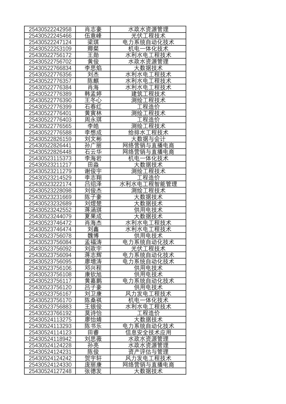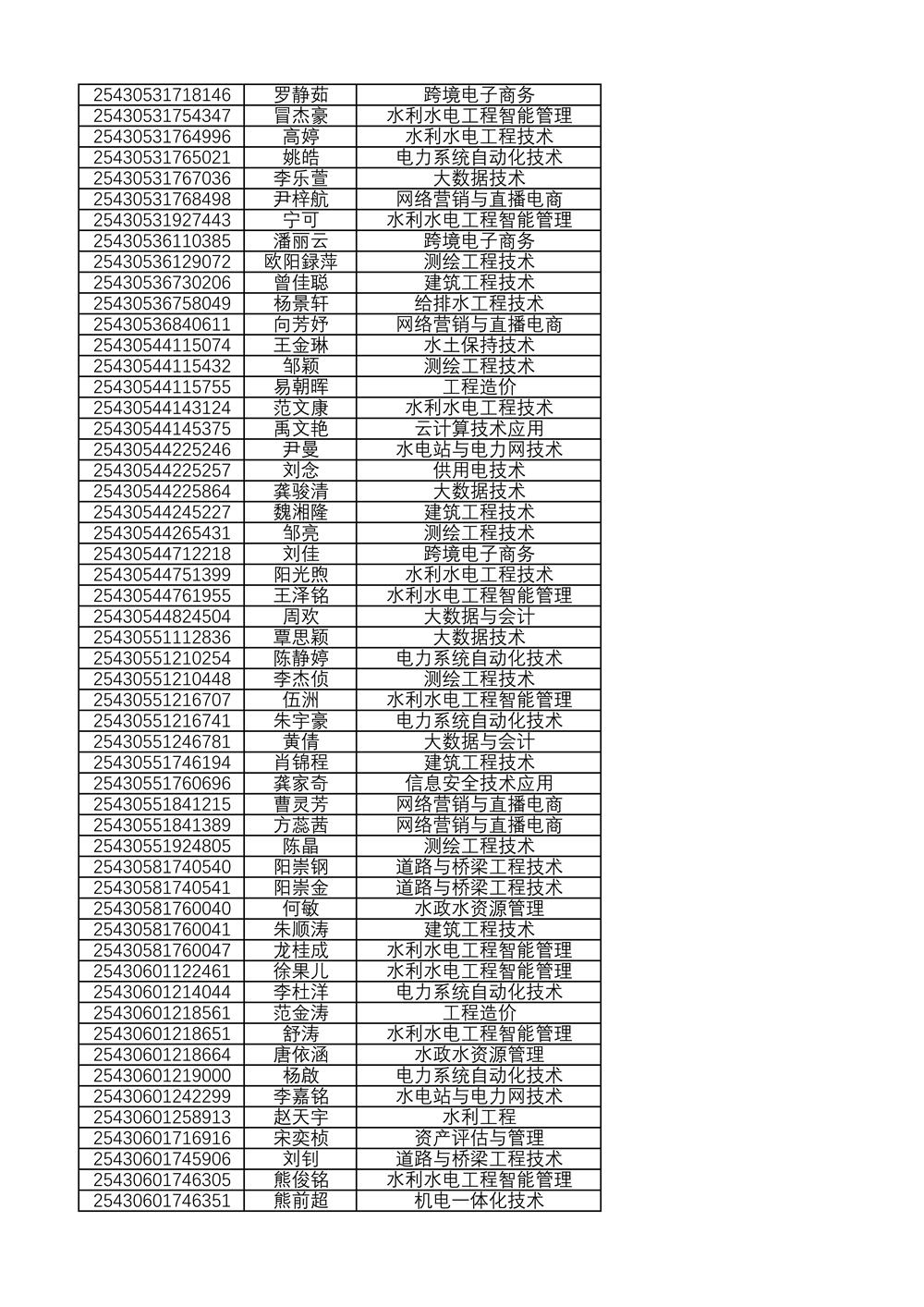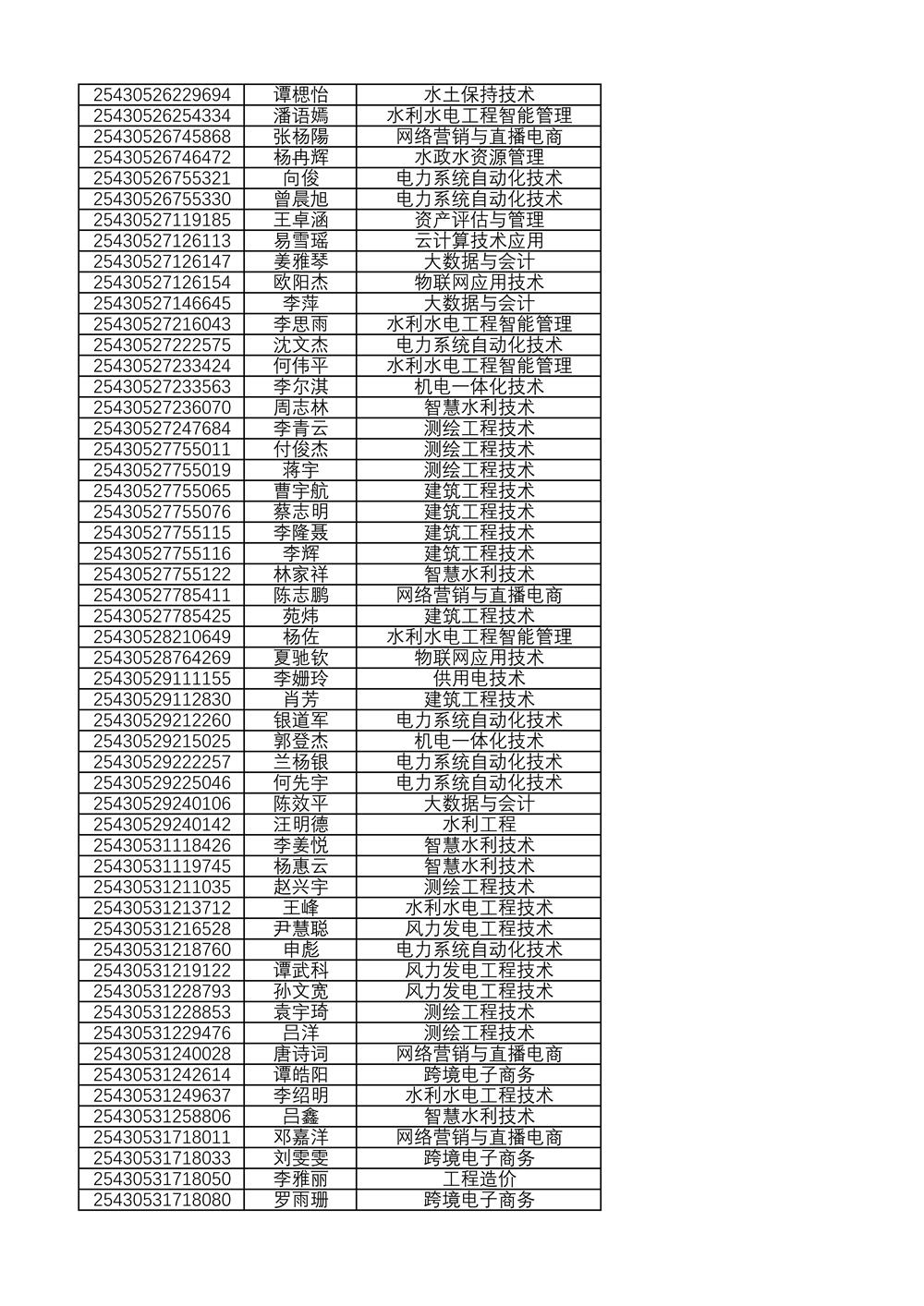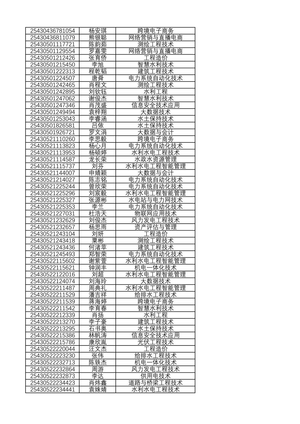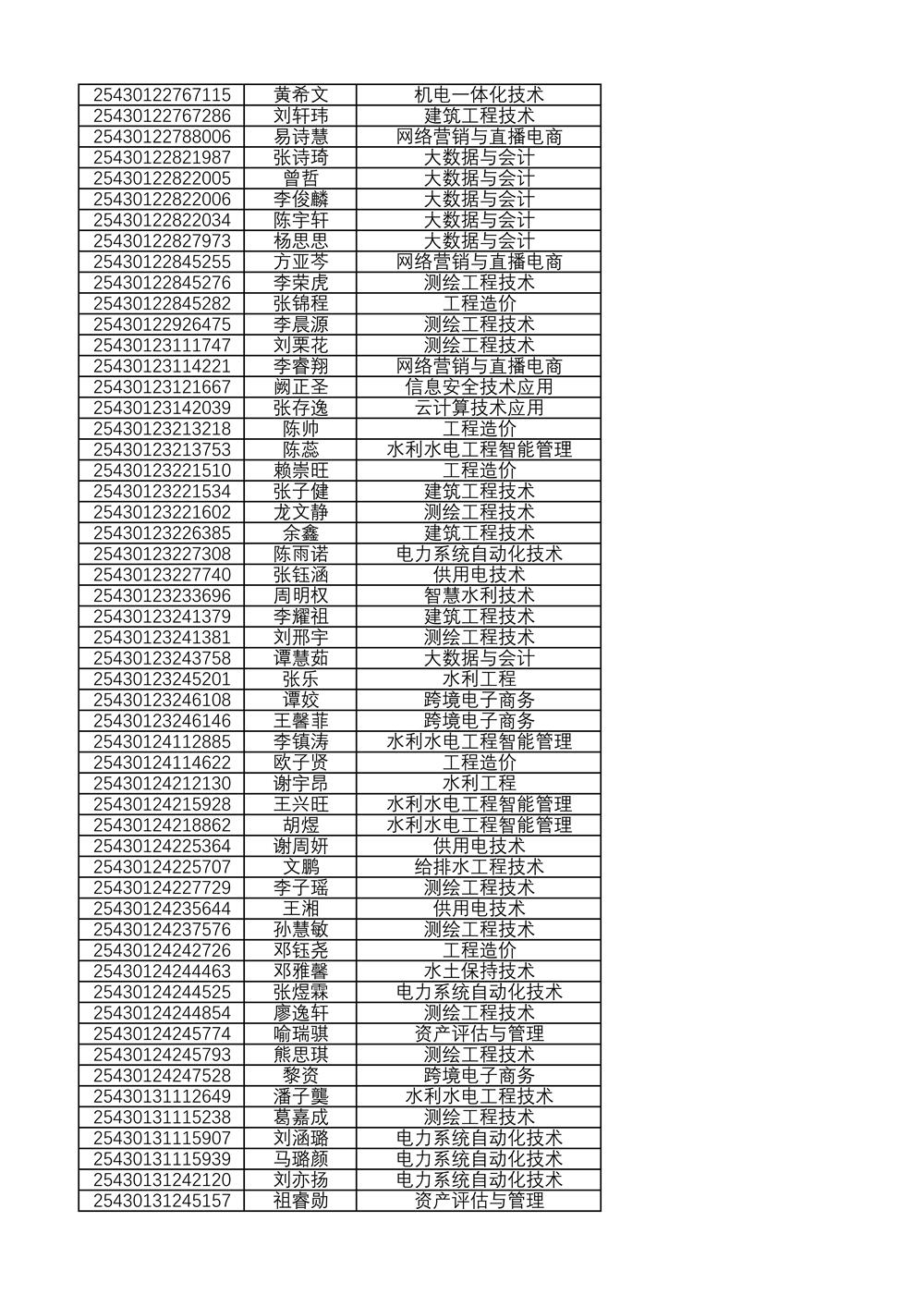 附:2025年单独招生拟录取名单(按考生号排序)