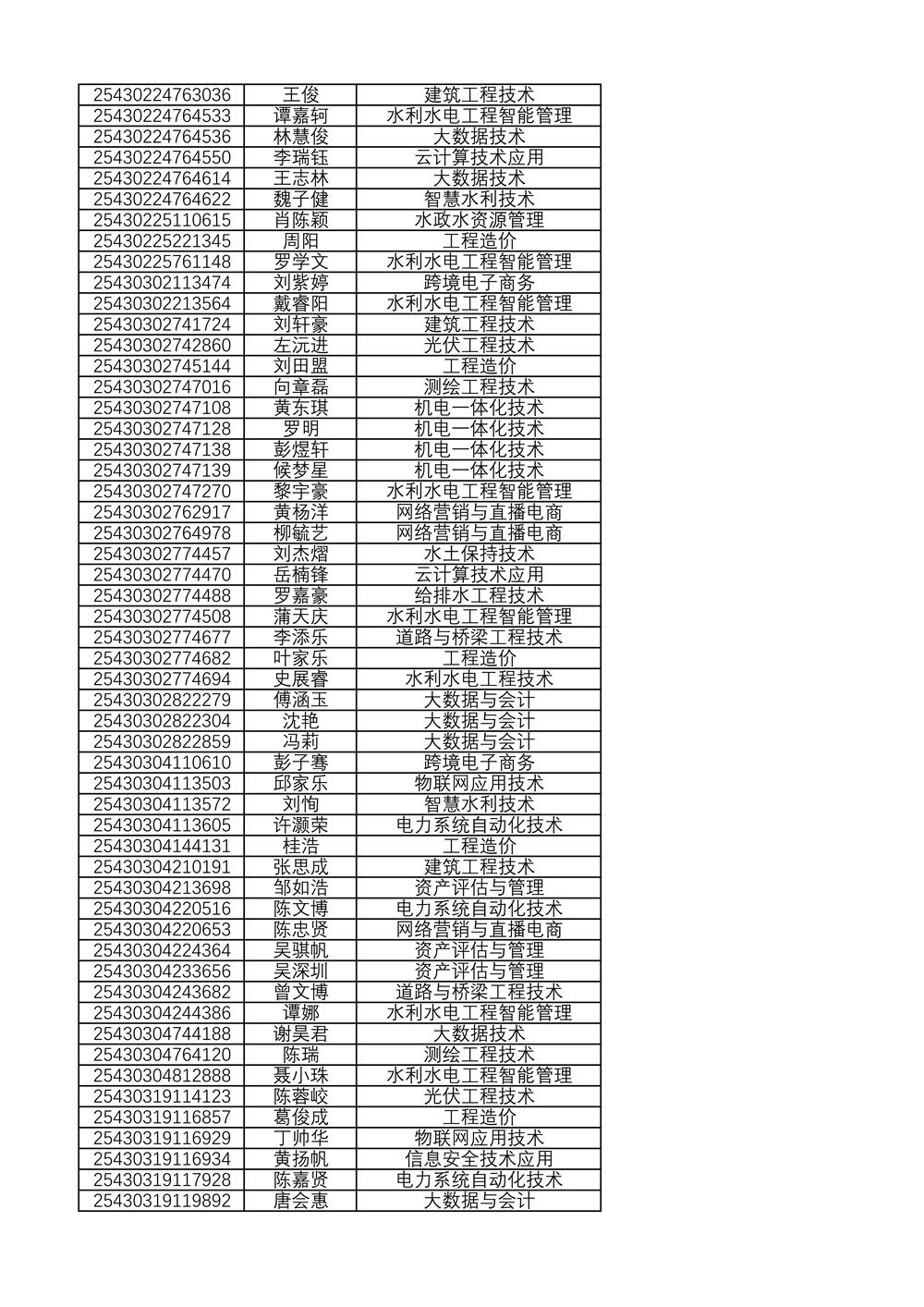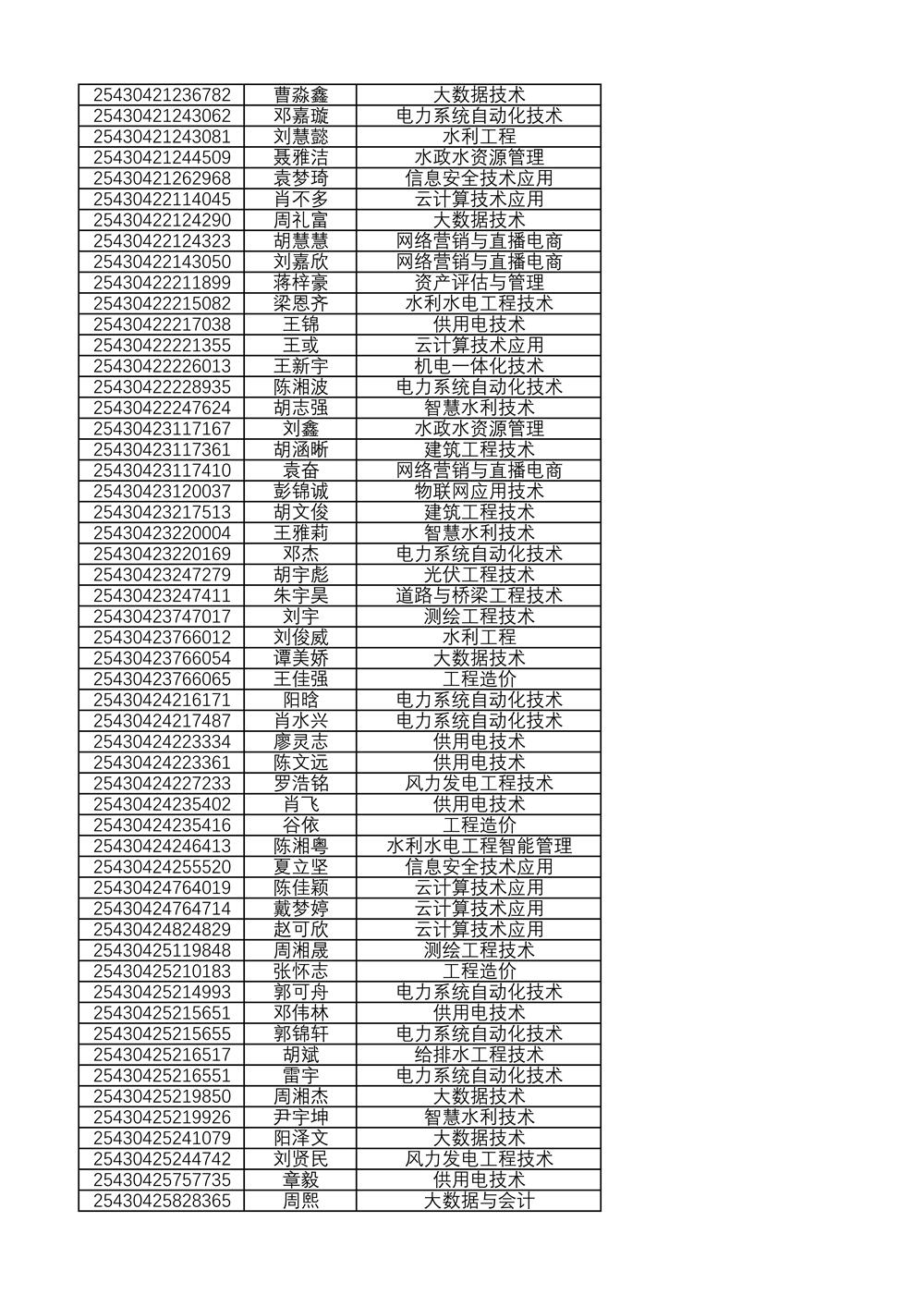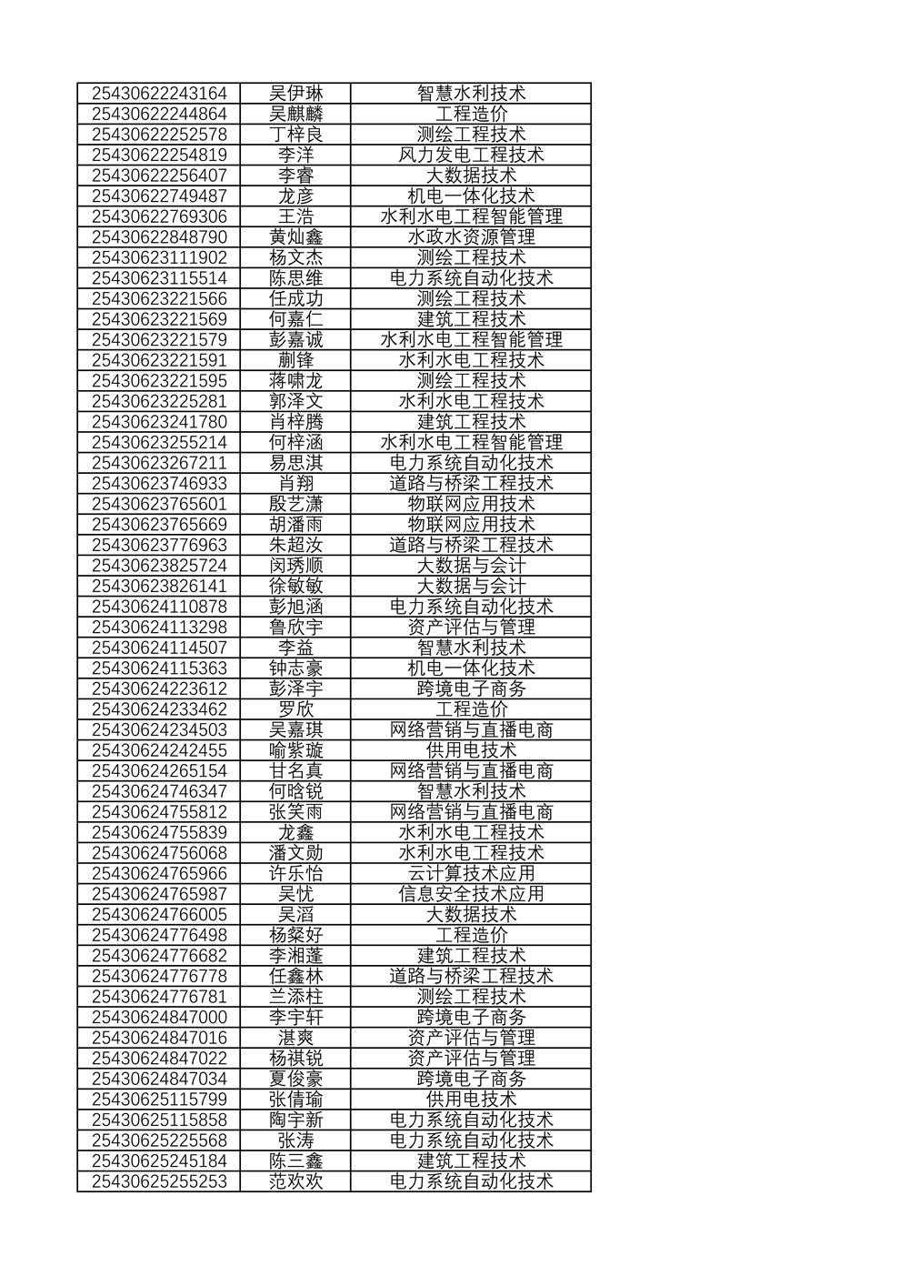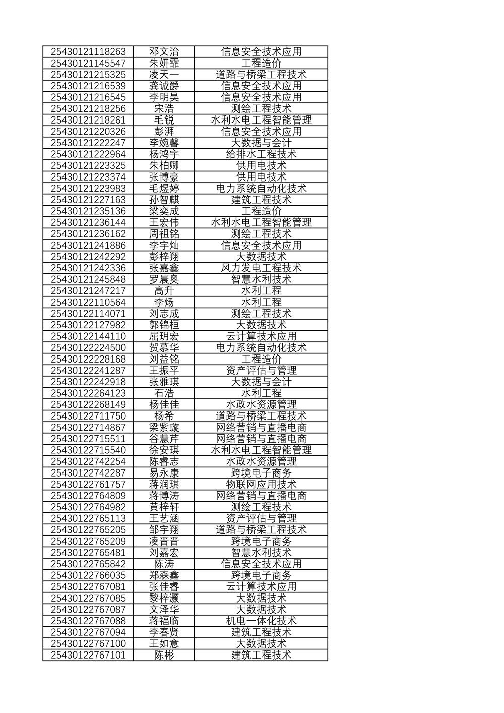 附:2025年单独招生拟录取名单(按考生号排序)
