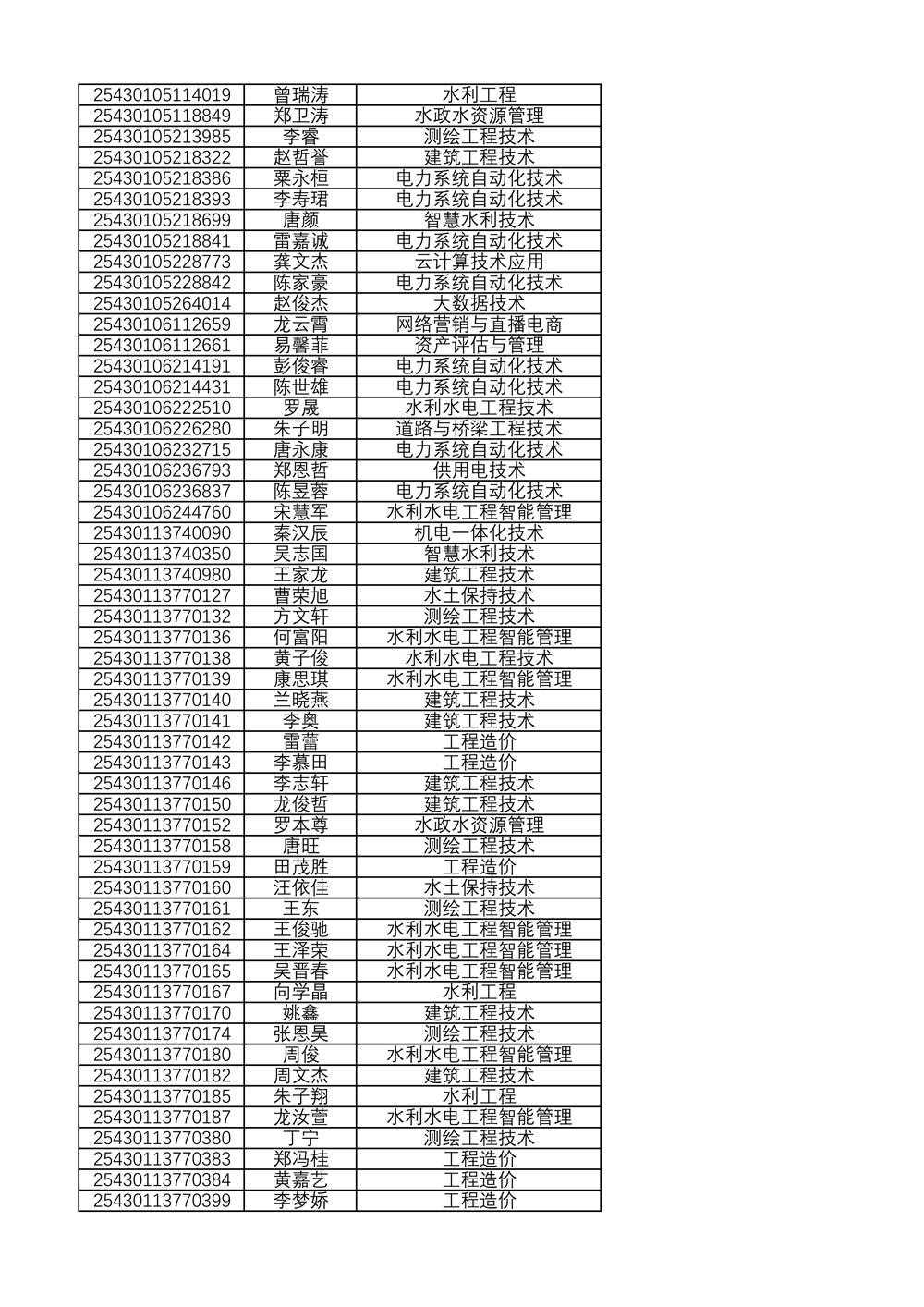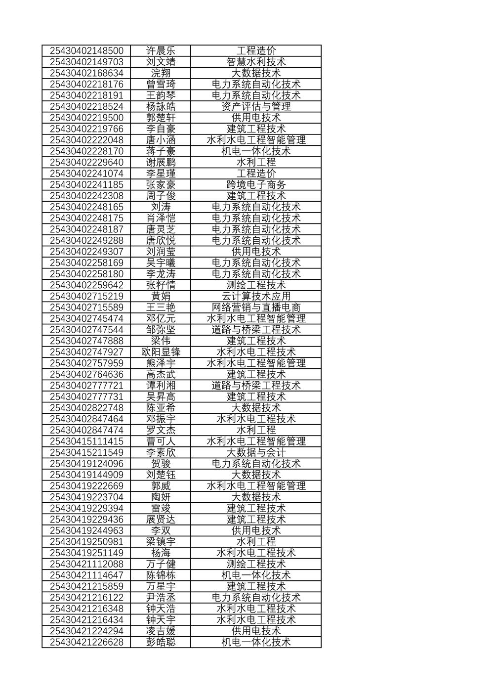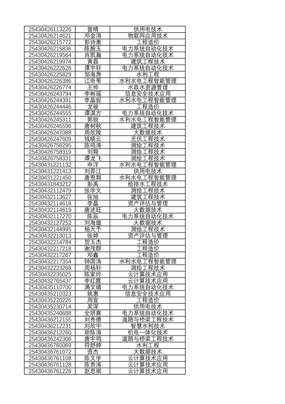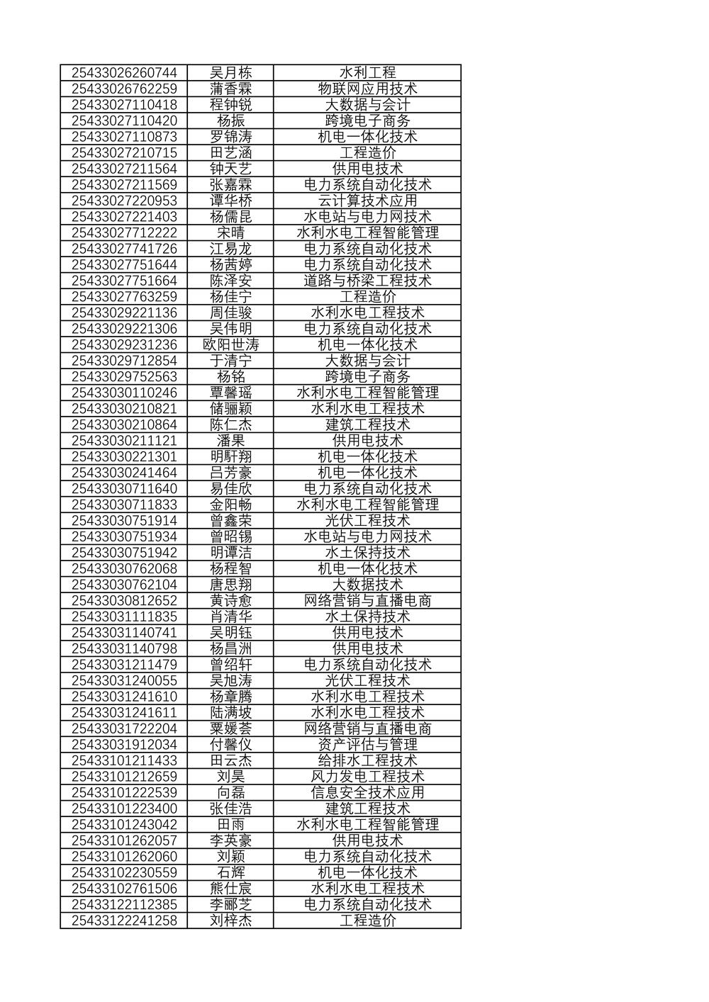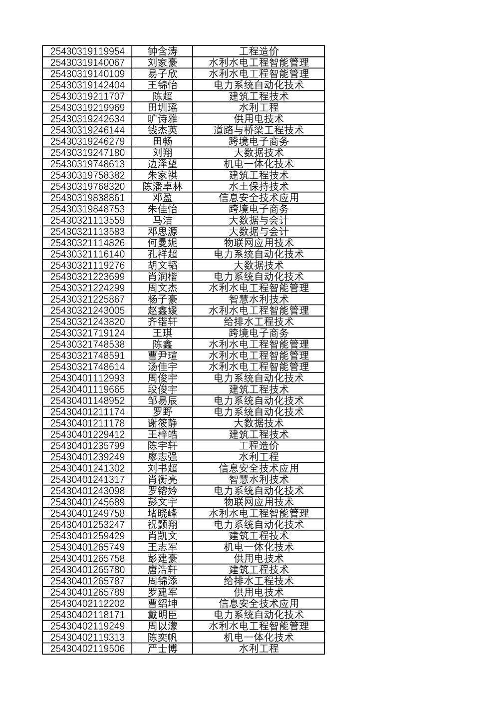 附:2025年单独招生拟录取名单(按考生号排序)