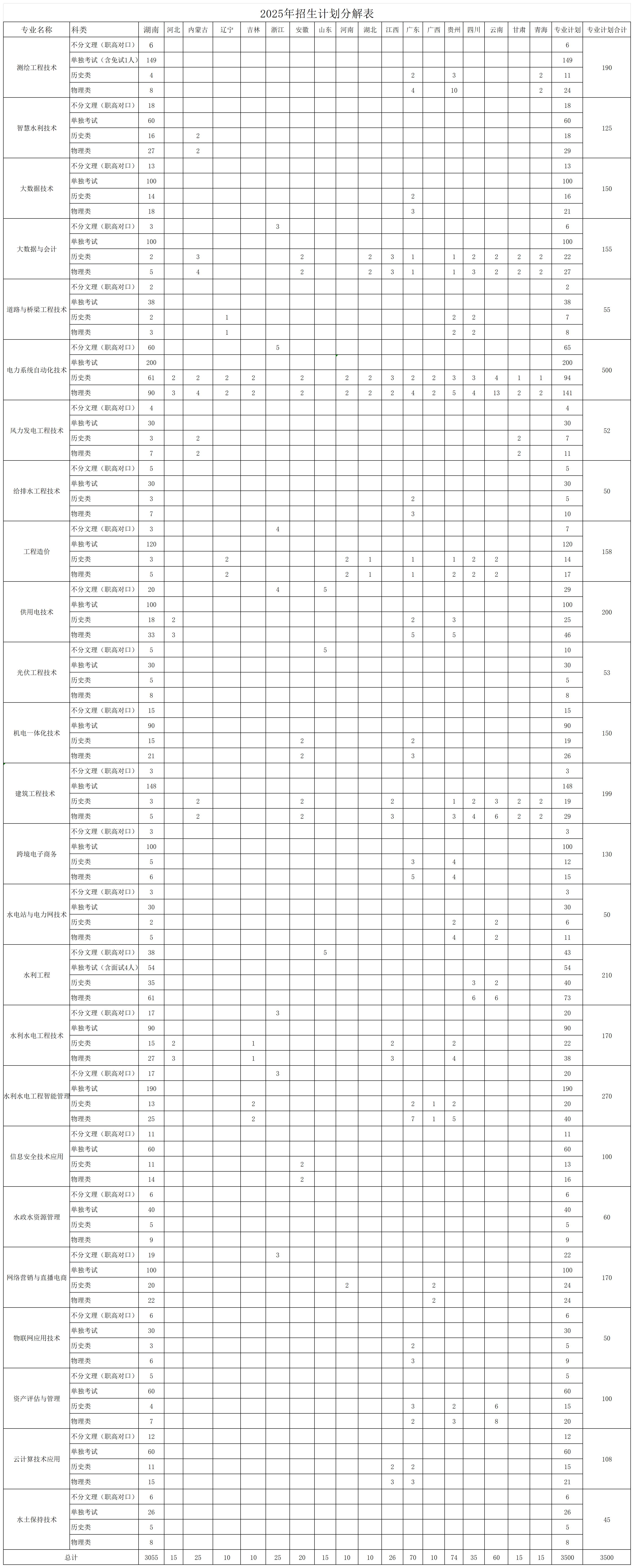 2025年招生计划分解表