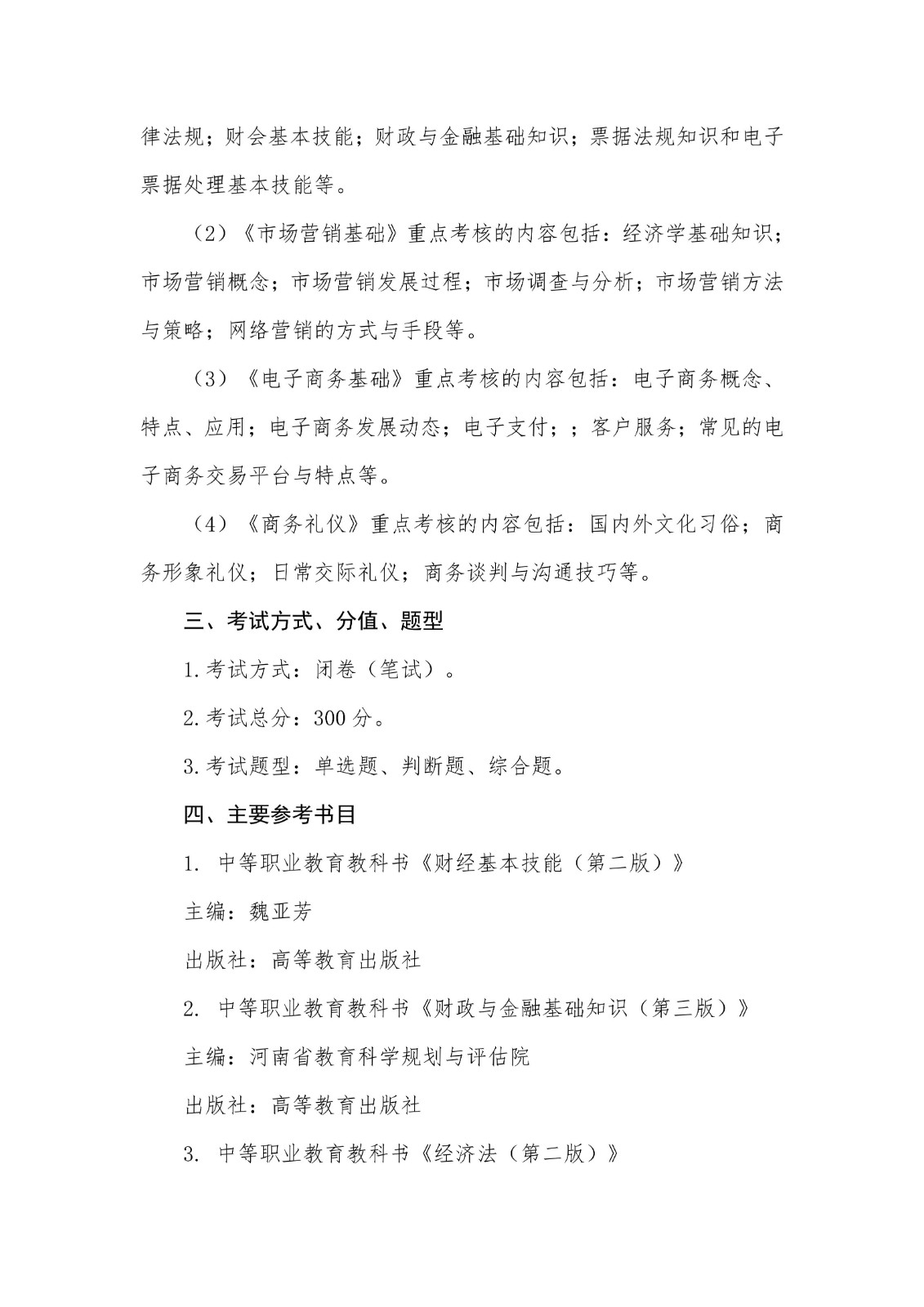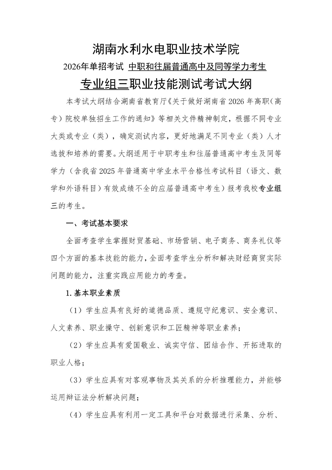 2026年单独招生专业组三职业技能测试大纲
